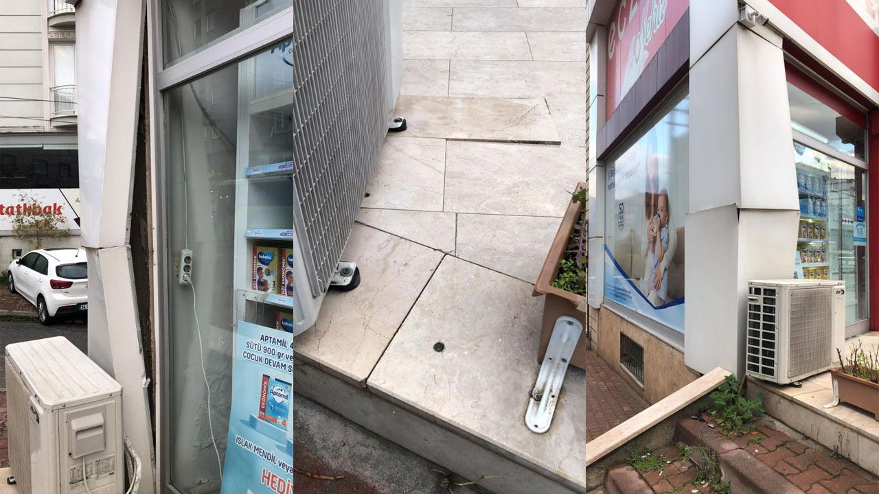 Fotoğraflarda binanın zemininde kaymalar olduğu görüldü. Ayrıca fotoğraflarda, binanın köşe bölümünü kaplayan beyaz renkli dış cephe kaplamasının yerinden ayrıldığı da dikkat çekti.