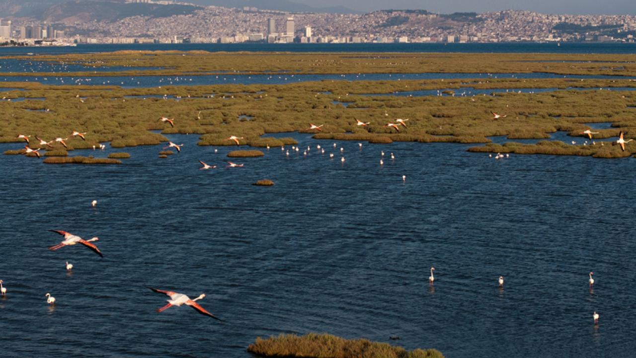 Yerleşim yerlerine kadar uzanan Gediz Deltası, tuzlu su çayırları ve deniz börülcelerinin oluşturduğu yüzey şekilleriyle adeta gerdanlık gibi İzmir Körfezini süslüyor. Delta ayrıca flamingolara da ev sahipliği yapıyor. Şehirle iç içe bir görüntü veren flamingolar, gün içerisinde deltada besleniyor. Flamingolar, beslenmeleri sırasında alg ve tuzlu su karidesi gibi karotenoid açısından zengin besinlerden pigment emiyor. Bu pigment, büyüdükçe tüylerine yerleşerek tüylerine o meşhur pembe rengini veriyor.