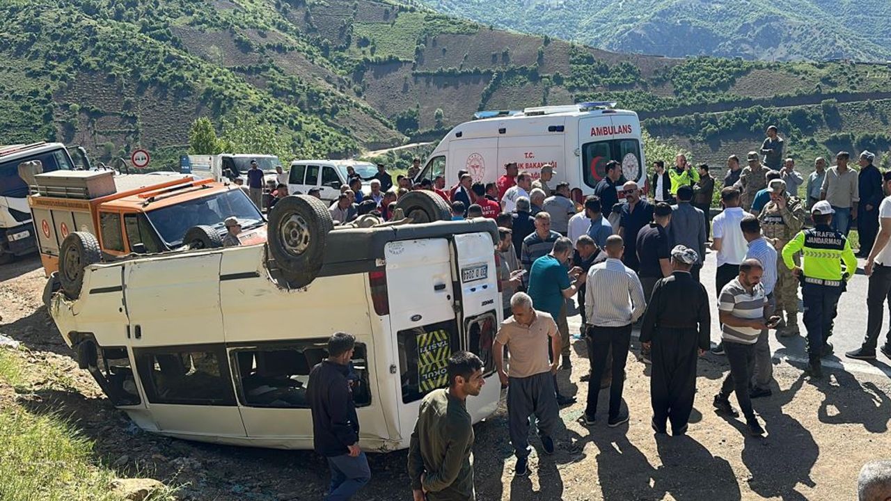 Kazada yaralanan sürücü ile minibüsteki 13 öğrenci, ambulanslarla Şemdinli Devlet Hastanesine kaldırıldı.