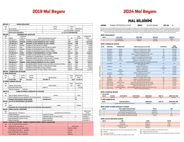 2019 yılında açıkladığı mal beyanında şirketlerine yer veren Ekrem İmamoğlu, 2024 yılında açıkladığı mal beyanında ise halen sahibi olduğu şirketlere ve üzerinde milyarlarca liralık villaların olduğu Güllüce Tarım A.Ş'ye yer vermedi.