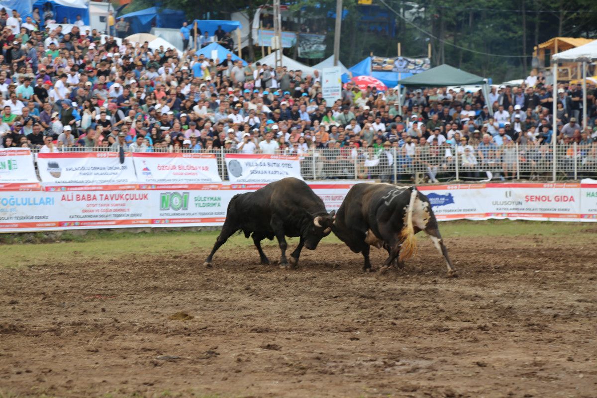 1.200 rakımlı Kafkasör Yaylası'ndaki arenada düzenlenen boğa güreşlerine, Artvin ve ilçeleri başta olmak üzere Rize ve Erzurum illerinden 108 boğa sahibi katıldı.