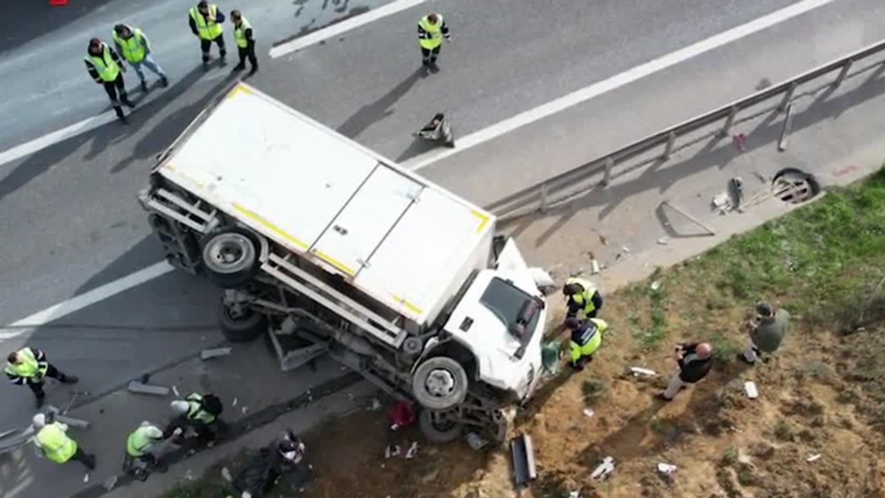Kuzey Marmara Otoyolu'ndan Edirne istikametinde seyreden İ.K. yönetimindeki zincir markete ait kamyon, Işıklar Gişeleri'nde önünde giden aynı firmaya ait E.A. idaresindeki çarptı. Çarpmanın etkisiyle kontrolden çıkan kamyon bariyerleri aşarak devrildi. Savrulan diğer kamyon da tıra çarptı.