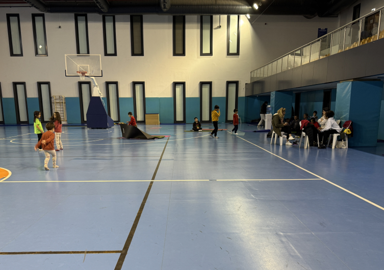 Bazı aileler tribünlerdeki seyirci koltuklarında vakit geçirirken, çocukların müsabaka sahasında oynadığı görüldü.