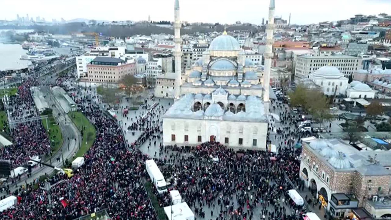 Eylem öncesi toplanma noktalarından biri olan Ayasofya-i Kebir Cami-i Şerifi'ne çok sayıda vatandaş geldi. Sabah namazını burada kılan on binlerce katılımcı, Galata Köprüsü'ne doğru yürüyüşe geçti.