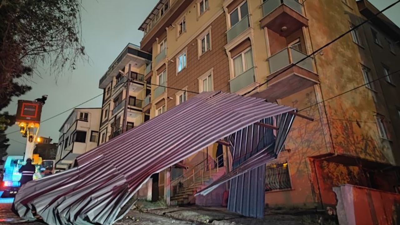 İhbar üzerine bölgeye gelen itfaiye ekipleri, çatı parçalarını toplayarak güvenli alana taşıdı.