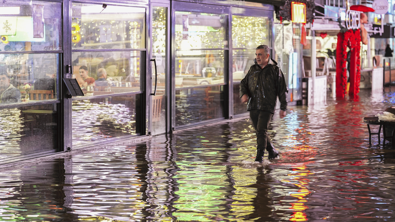 Öte yandan Çeşme ilçesinde kuvvetli fırtına nedeniyle deniz taştı, bazı yollar su altında kaldı.