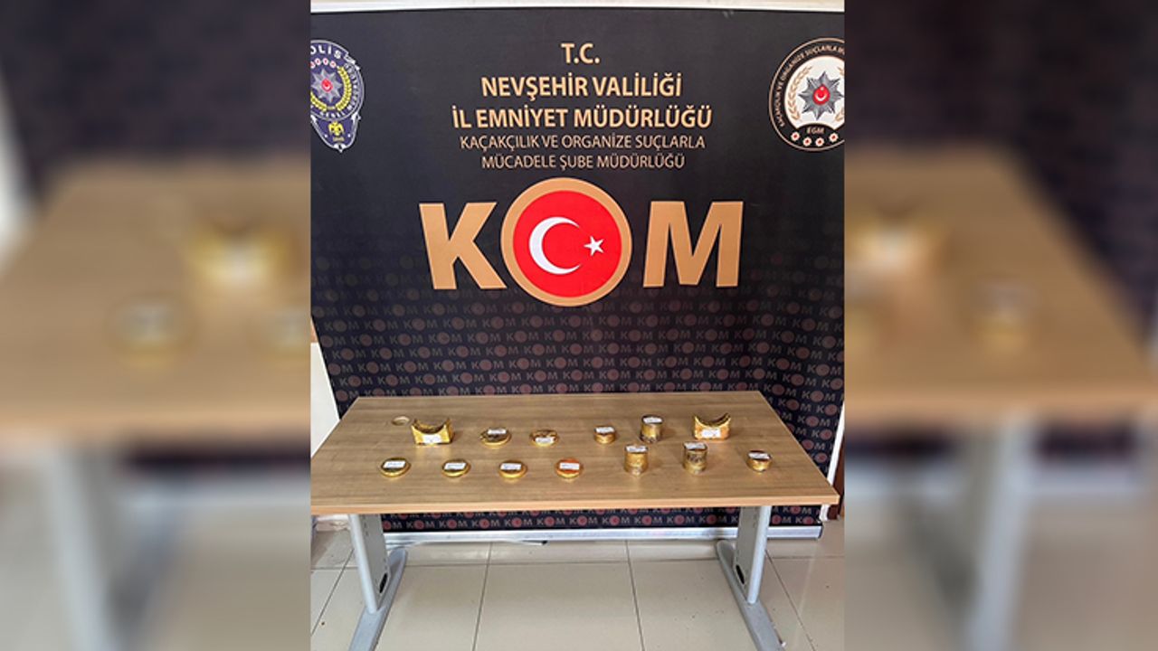 Ülkelerinden uçakla İstanbul aktarmalı olarak Nevşehir'e gelen şüphelilerin valizlerindeki aramada, kıyma ve hamur yoğurma makinelerinin içine eritilerek makinelerin parçası gibi gizlenmiş halde 61 kilo 121 gram kaçak altın ele geçirildi.