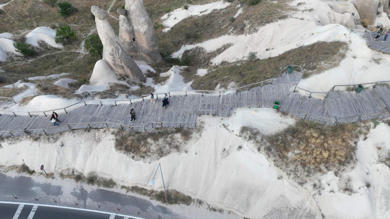 Yürüyüş yolundaki eskiyen ve bozulan travers döşemelerin bakım ve onarımı için başlatılan çalışmalar, alanın tarihi ve doğal dokusuna zarar vermeden, orijinal yapısına ve bölge estetiğine uygun şekilde yürütülüyor. Kapadokya Alan Başkanlığı tarafından bölgenin tarihi ve doğal mirasını koruma önceliğiyle yürütülen çalışmalar, ziyaretçilere daha güvenli ve nitelikli bir alan sunmayı amaçlıyor.