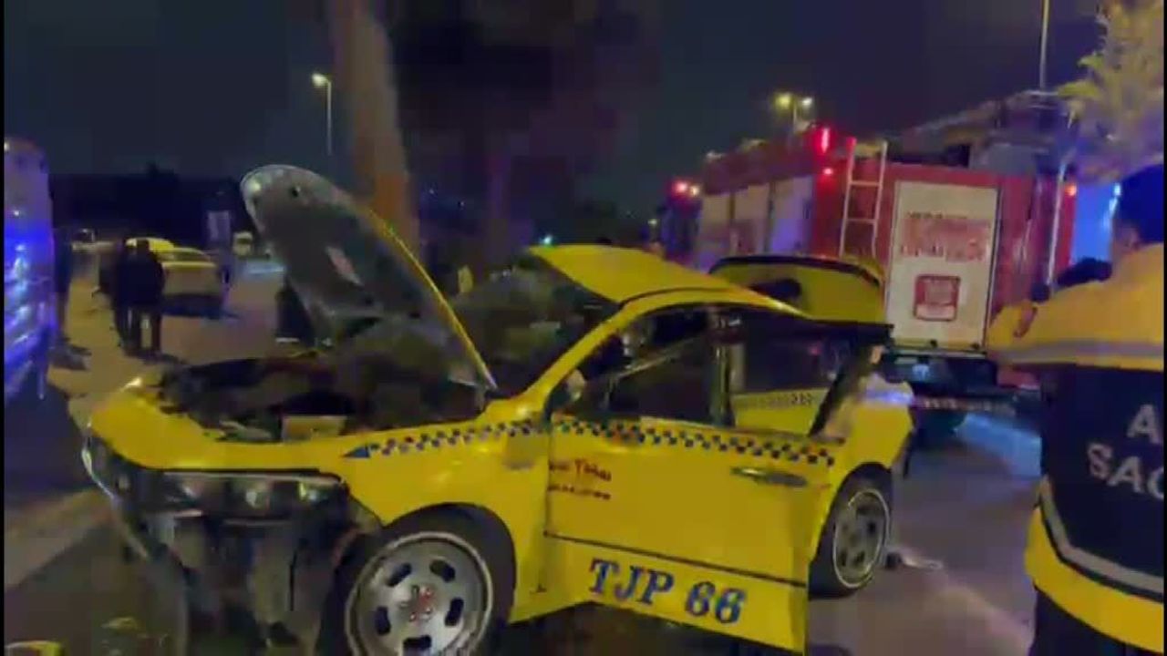 Kazada savrulan taksi ve otomobil önce bariyerlere, ardından orta refüjdeki ağaçlara çarparak durabildi.