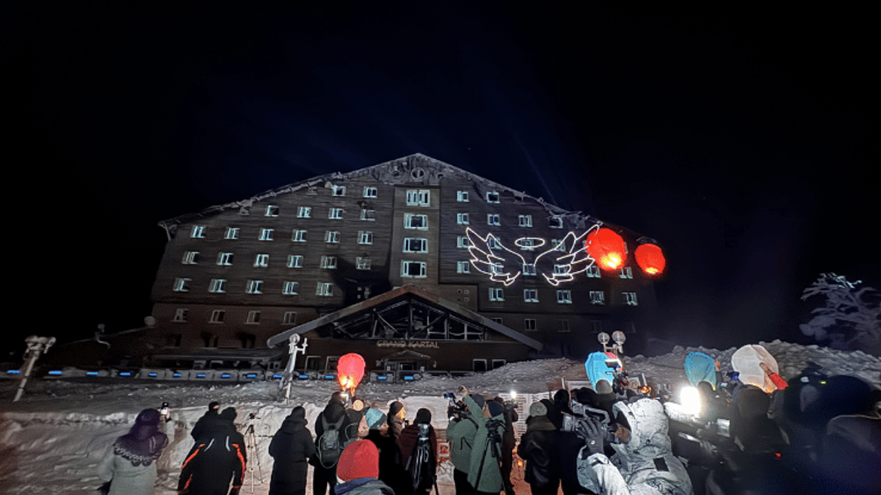 Otelin önündeki alana hayatını kaybedenlerin fotoğraflarının konulmasının ardından karanfiller bırakıldı, mumlar yakıldı, dilek balonları gökyüzüne uçuruldu.