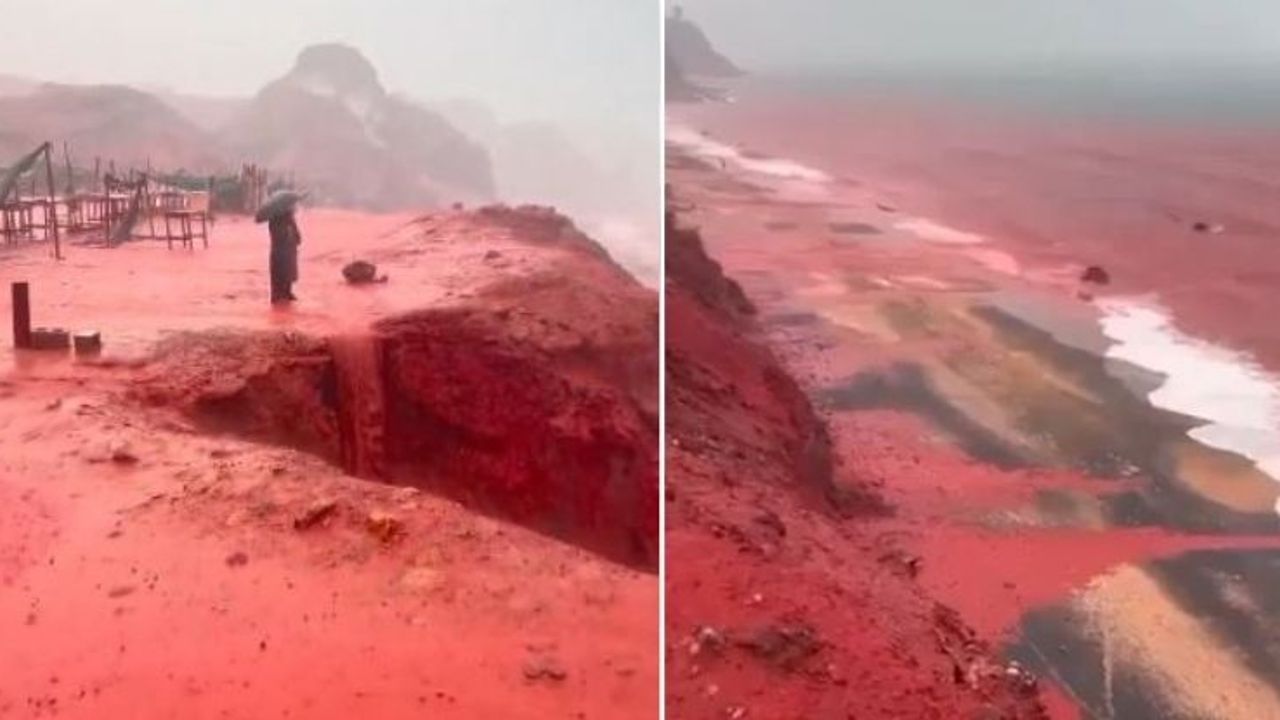 İran'ın güneyindeki Hürmüzgan eyaletinde yer alan ve Hürmüz Adası ile özdeşleşen "Kızıl Sahil", sabah saatlerinde etkili olan yağışların ardından yeniden gündeme geldi. Yağmur sonrası demir oksit bakımından zengin kırmızı toprağın denize karışmasıyla birlikte sahil şeridi ile deniz suyunun geçici olarak kızıl renge büründüğü gözlemlendi. Sosyal medyada paylaşılan görüntülerde, yağışların etkisi ve dalgaların kıyıya vurması sonucu kırmızı toprağın denizle buluştuğu ve bölgede görsel açıdan dikkat çekici bir doğal manzaranın oluştuğu görüldü. Volkanik ve tortul yapısıyla bilinen bölge, bu özelliğiyle kısa sürede yoğun ilgi gördü.
