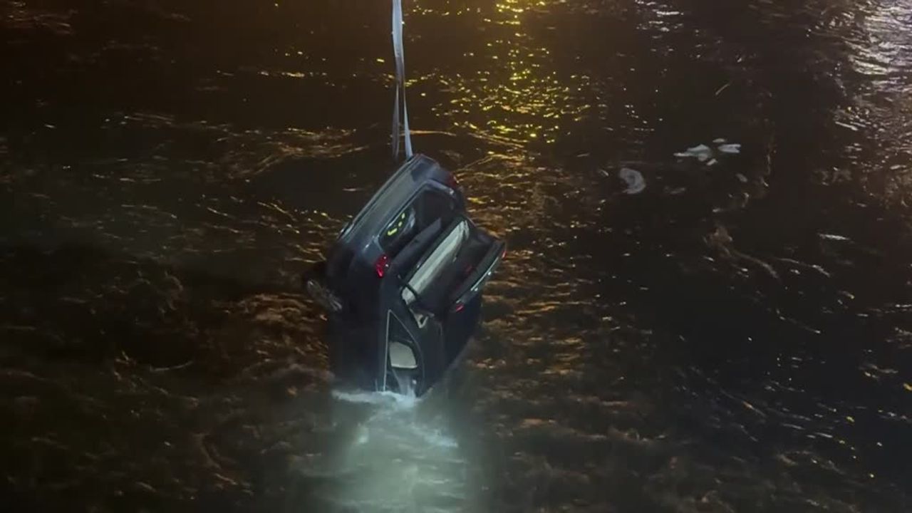 Sürücüsü henüz öğrenilmeyen otomobil, İstasyon Köprüsü korkuluklarına çarparak Yeşilırmak Nehri'ne düştü.