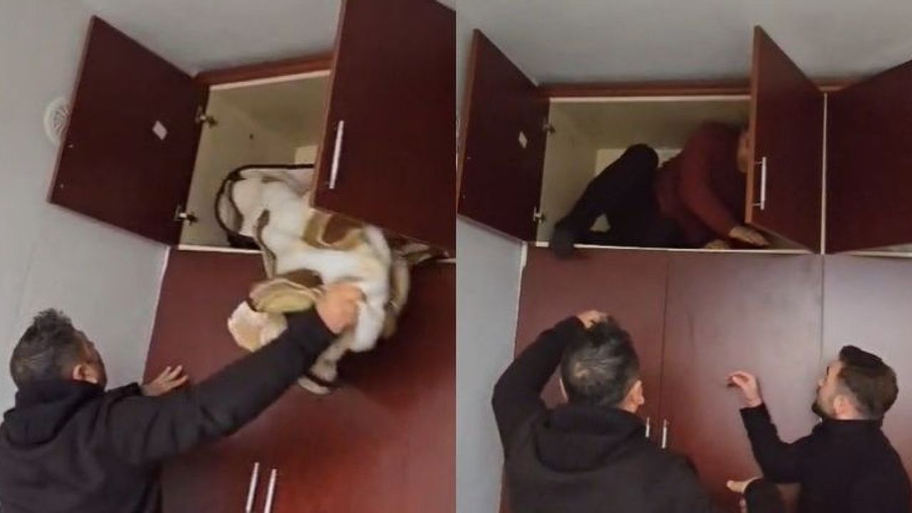 Polis ekipleri, şahsın bulunduğu adrese baskın yaptı. Evde arama yapan ekipler, Mehmet A.’yı yatak odasında bulunan gardorabın üst kısmında, battaniye altında saklanırken buldu. Gözaltına alınan şahıs ekipler tarafından ifadesi alınmak üzere emniyete götürüldü.