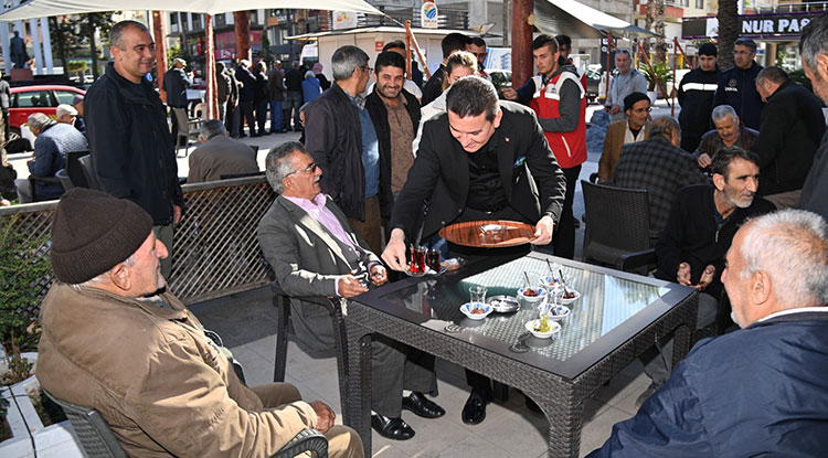 Önce emeklilere sonra da işi gücü olmayanlara “Çaylar benden” diyerek servis bile yapmış. Yanında KEK ikram etmeyi de unutmamış. Tabi KUMLUCALI YÖRÜK yutar mı bunu? Yutmaz.