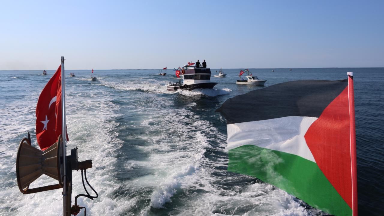 Dua edilmesinin ardından etkinliğe katılanlar Türk ve Filistin bayraklarıyla bindikleri gemi, tekne ve takalarla Karadeniz'e açılarak tur attı.