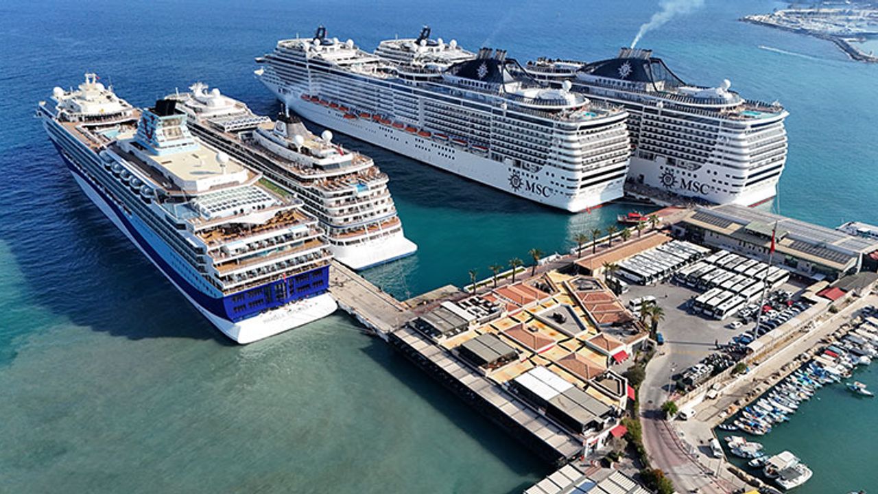 Ege Port Limanı'na Malta bayraklı "Marella Explorer", Bermuda Adaları bayraklı "Celestyal Journey", Norveç bayraklı "Viking Sea", Panama bayraklı "MSC Divina" ve "MSC Fantasia" gemileri yanaştı.