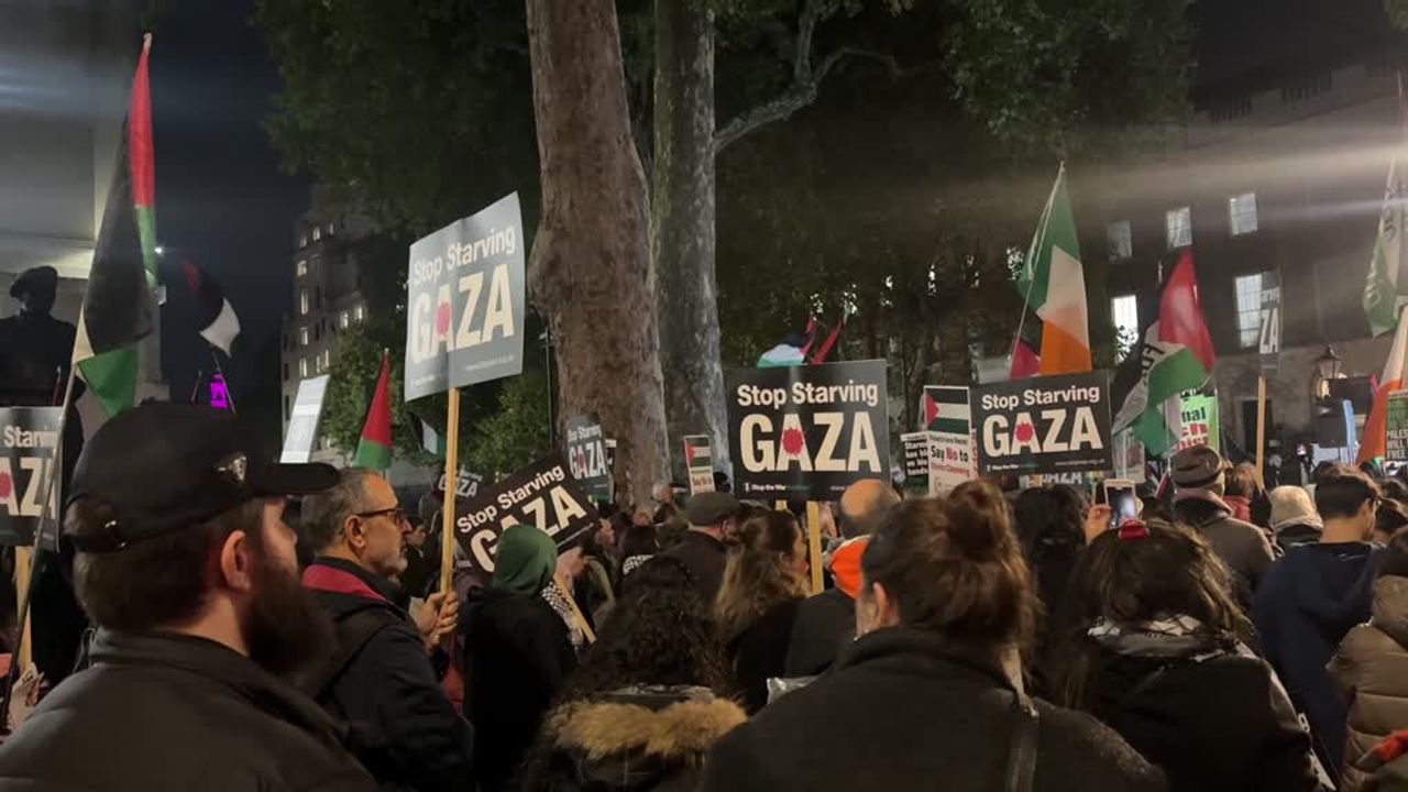 İngiltere Başbakanlık Ofisi 10 Numara'nın bulunduğu Downing Sokağı girişinde toplanan yüzlerce kişi, İsrail ordusunun 10 Ekim'de sağlanan ateşkesi ihlal ederek Gazze Şeridi'ni hava saldırılarıyla hedef almasına tepki gösterdi.