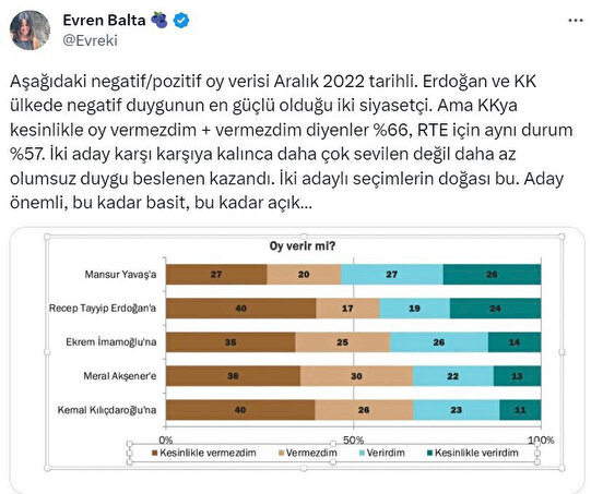 Yavaş'ın beğendiği anket paylaşımının sonundaki "Aday önemli, bu kadar basit, bu kadar açık…" notu ise dikkat çekti.