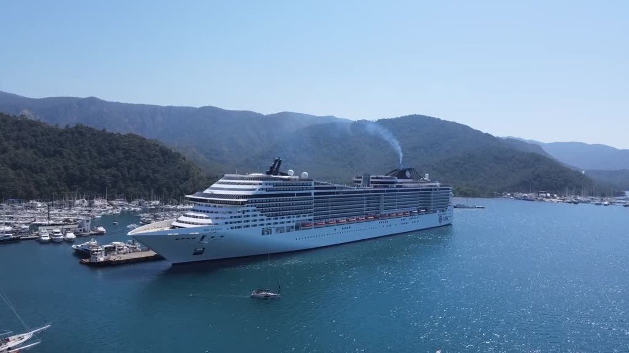 Kuşadası Limanı'ndan gelen ve Marmaris Cruise Port Limanı'nın büyük iskelesine yanaştırılan 333 metre uzunluğundaki gemide, 3 bin 280 yolcu ve 1520 personel bulunduğu belirtildi.