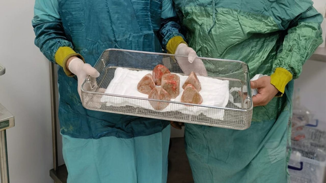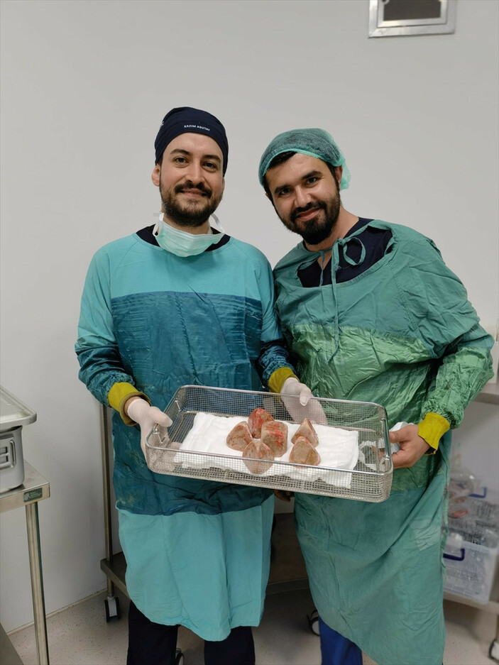 Üroloji uzmanları Op. Dr. Mehmet Kazım Asutay ve Op. Dr. Celal Kılınç tarafından yapılan operasyonla hastanın mesanesinden 6 parça, toplam 2 kilo 200 gram taş çıkarıldı.