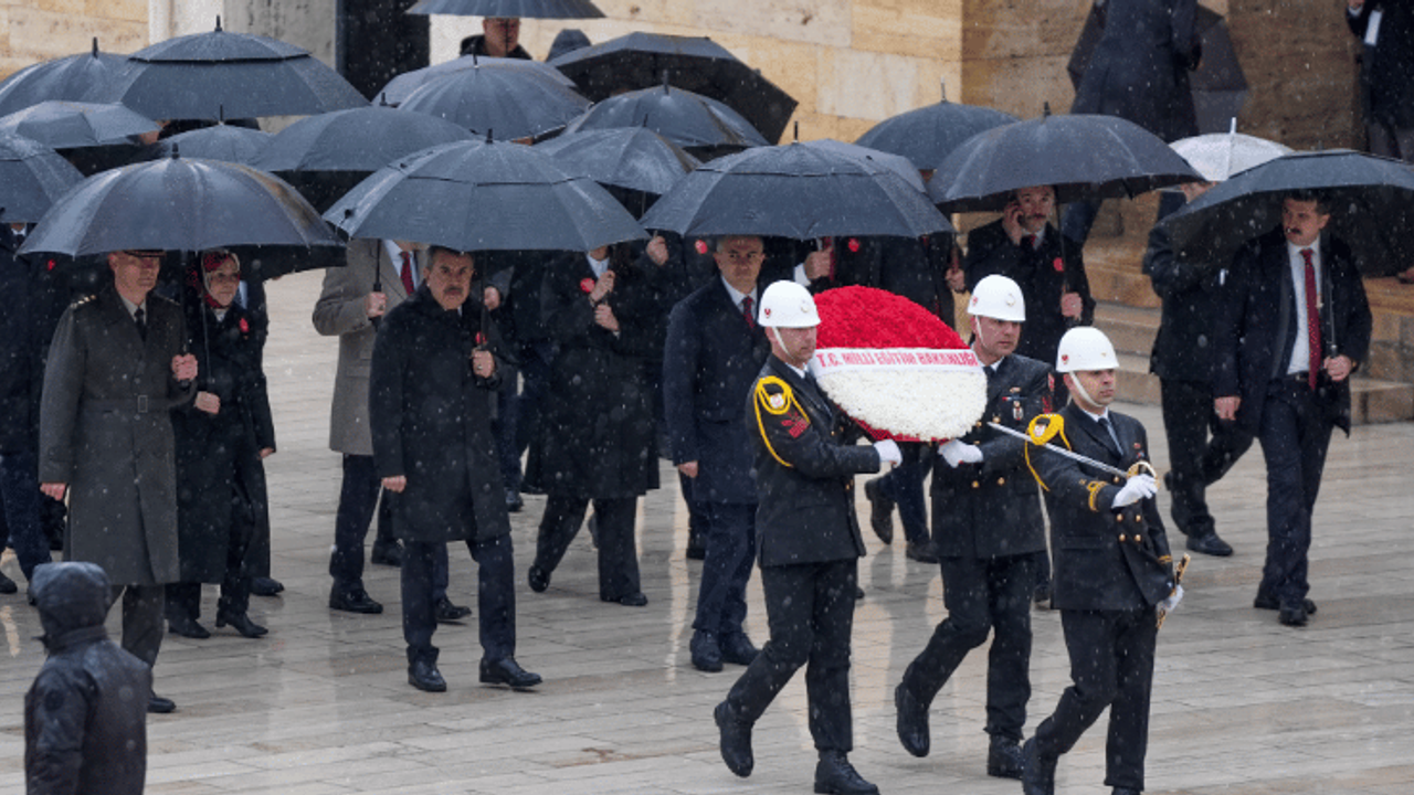 Bakan Tekin'in başkanlığındaki bakanlık bürokratlarından oluşan heyet, Aslanlı Yol'dan Gazi Mustafa Kemal Atatürk'ün mozolesine yürüdü.