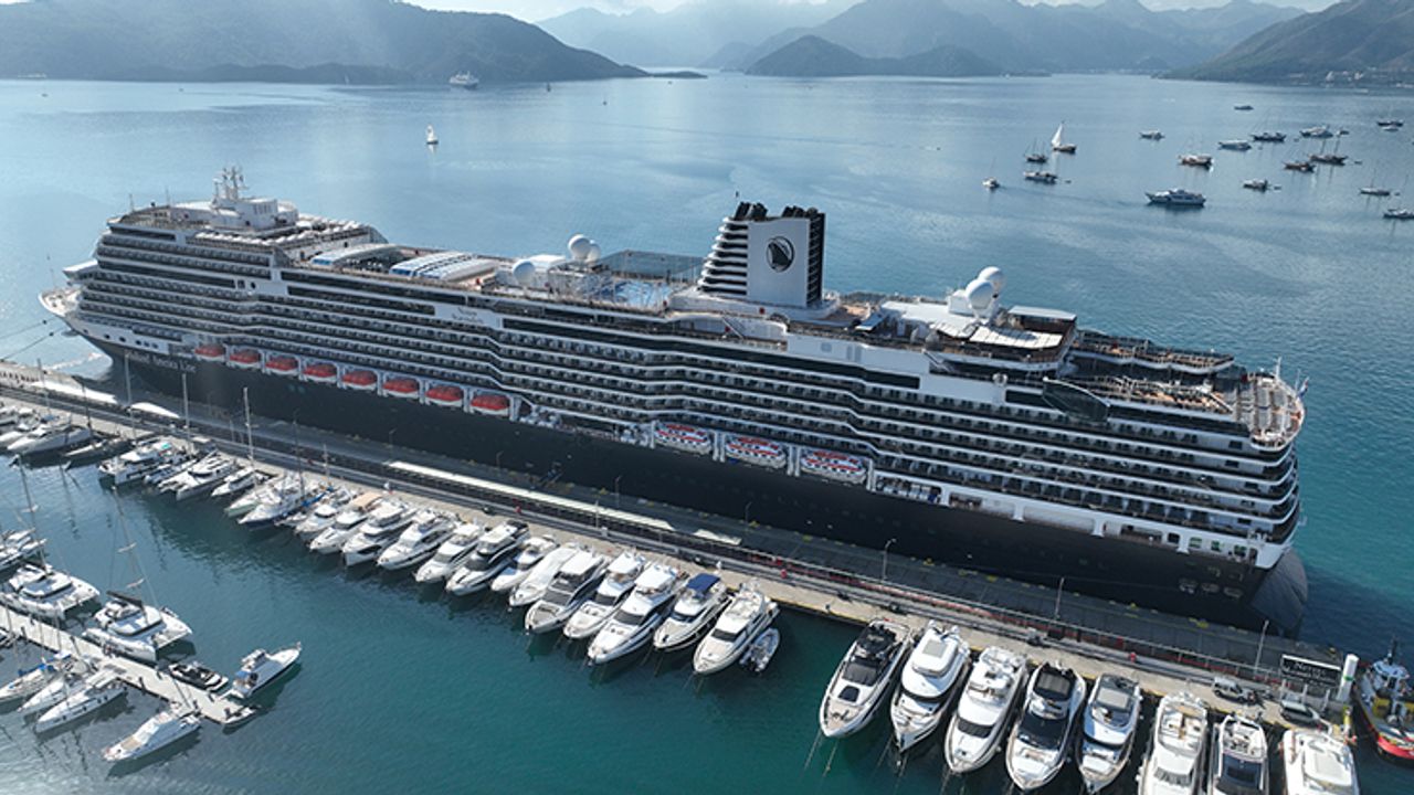 Mikonos Limanı'nın ardından rotasını Marmaris'e çeviren 300 metre uzunluğundaki yolcu gemisi, Marmaris Limanı'nın büyük iskelesine yanaştırıldı.