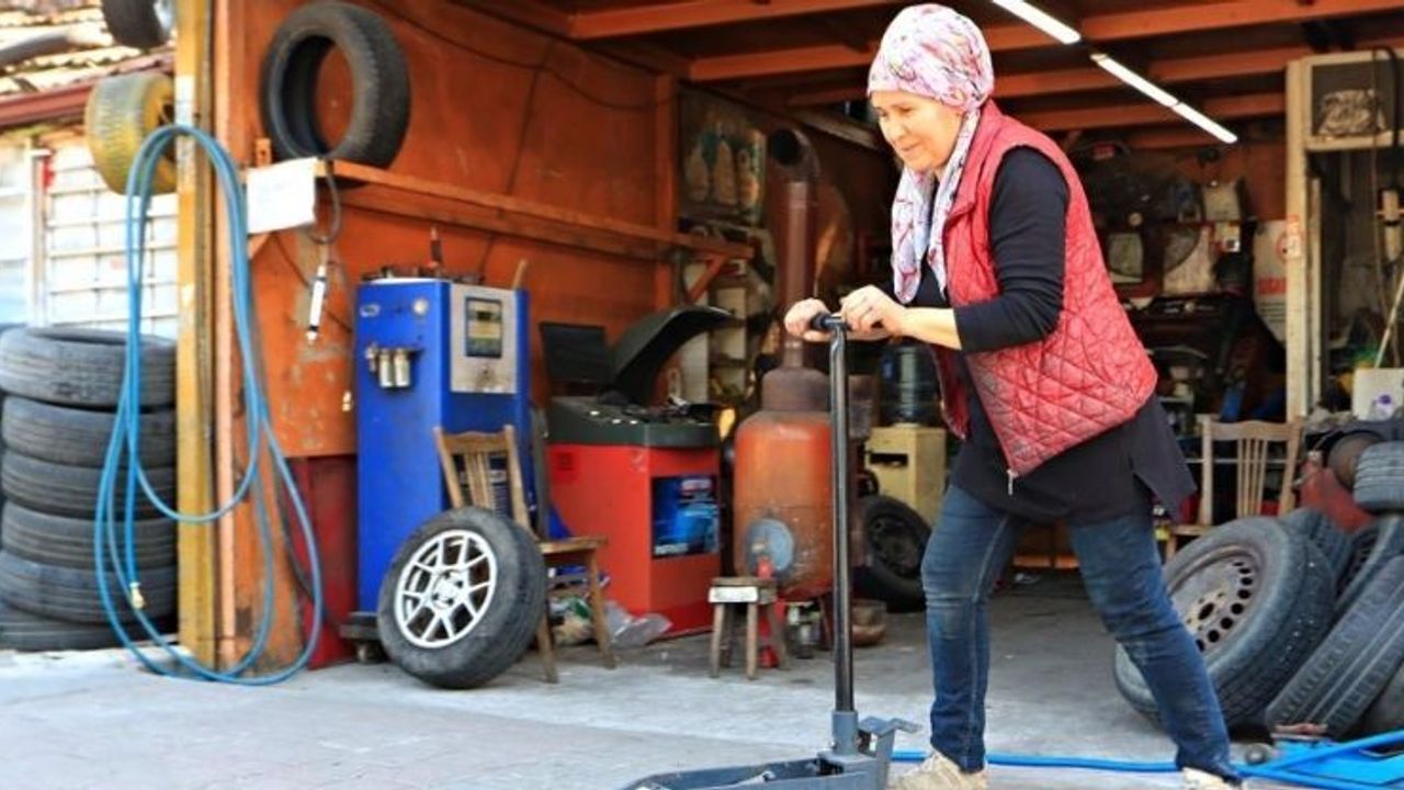 Antalya'nın Muratpaşa ilçesinde eşi ile birlikte yaklaşık 30 yıldır lastik tamirhanesi işleten Mümine Kökçe, kadınların zorlu mesleklerde de ne kadar başarılı olabileceğini kanıtlıyor. Erkek işi olarak görülen lastik tamirciliğini bir kadın olarak 'yapılamaz, zor' denilen işleri yapmanın mutluluğunu duyduğunu söyledi. Eşi ile evlendikten sonra ilk olarak tamirhaneye gelen müşterilerle ilgilendiğini, daha sonra ise internette gördüğü kadınların yaptığı işlerden aldığı ilham ve eşinin desteği ile 7-8 senedir de lastik tamir ettiğini belirten Mümine Kökçe, "30 senedir burada eşimle birlikte çalışıyorduk. Daha doğrusu ben onun ayında duruyordum. Baktım internette kadınlar söküp takıyor, çeşitli işler yapıyor. Eşim ‘Neden sende yapmıyorsun' dedi, biraz onlardan ilham alıp bende lastik söküp takmaya başladım. 7-8 senedir de kendim yapıyorum. Öğrendiğime çok seviniyorum" dedi.