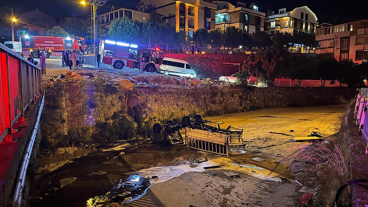 Yeniyalı Mahallesi Ömer Topuz Sokak’ta park halindeki kamyonet, henüz belirlenemeyen nedenle hareket ederek yaklaşık 5 metre yükseklikten Ağadere’ye düştü.