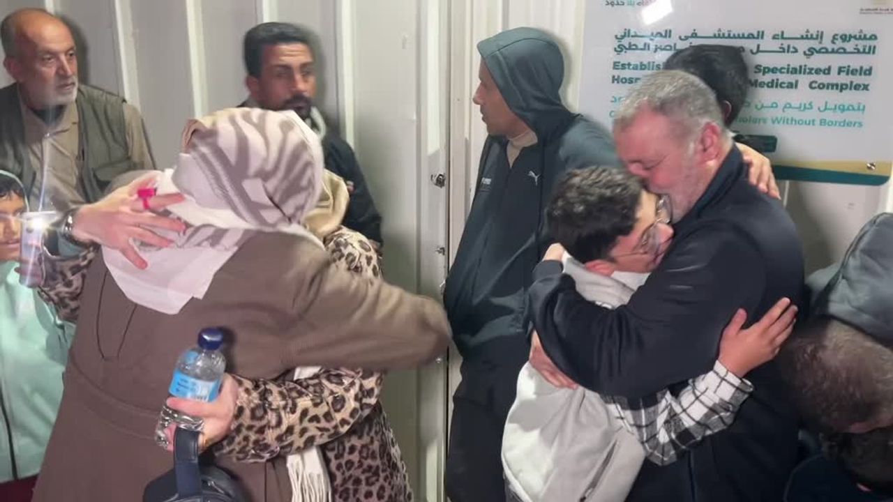Aylar sonra yakınlarını kavuşmak isteyen çok sayıda Filistinli, saatler öncesinde Han Yunus'taki Nasır Hastanesi önüne geldi.