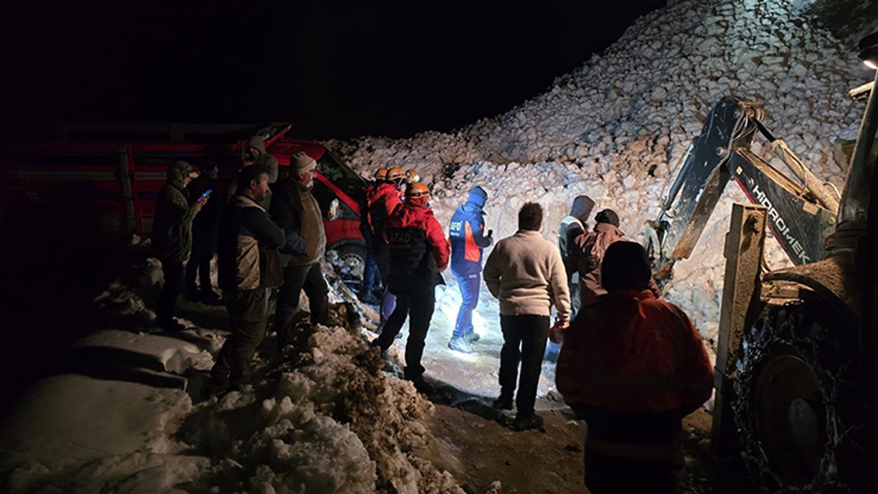 Yolda seyir halinde bulunan ve içinde hayvanların da yer aldığı bir kamyonete çığ çarpması sonucu uçurumun kıyısında askıda kaldı.