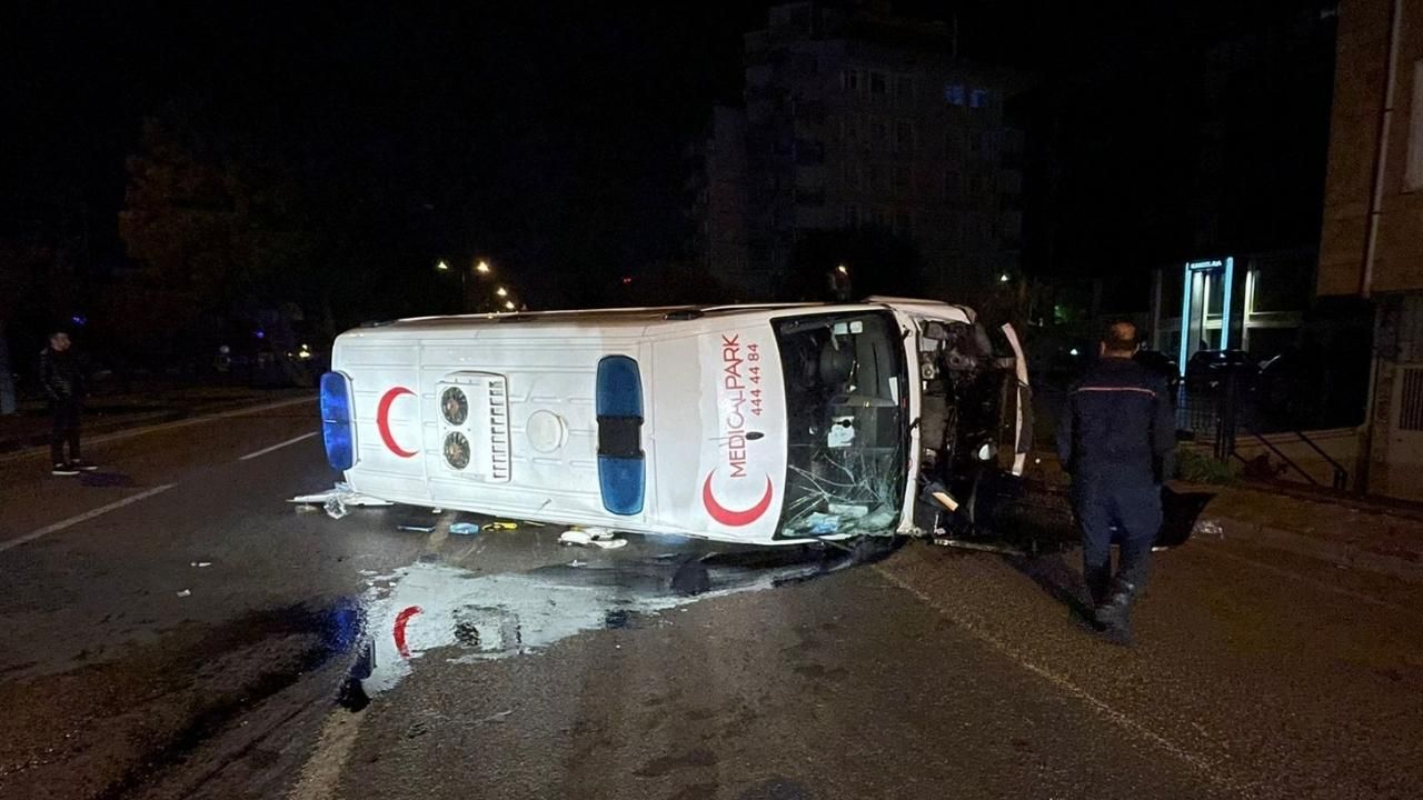 Kazada devrilen ambulansın şoförü Barış E, acil tıp teknisyenleri Mehmet U, Seval B, hasta Gamze Ç. ve refakatçi Nurten Ç. yaralandı.