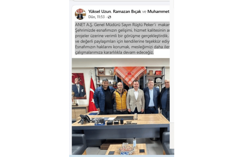 Uzun ve beraberindekiler ANET A.Ş. Genel Müdürü Rüştü Peker’i makamında ziyaret etmiş. Aklıma, Yüksel Başkan iş değiştirip KASAP MI açacak zannı geldi. Berberin et ile ne alakası olabilir öyle değil mi?