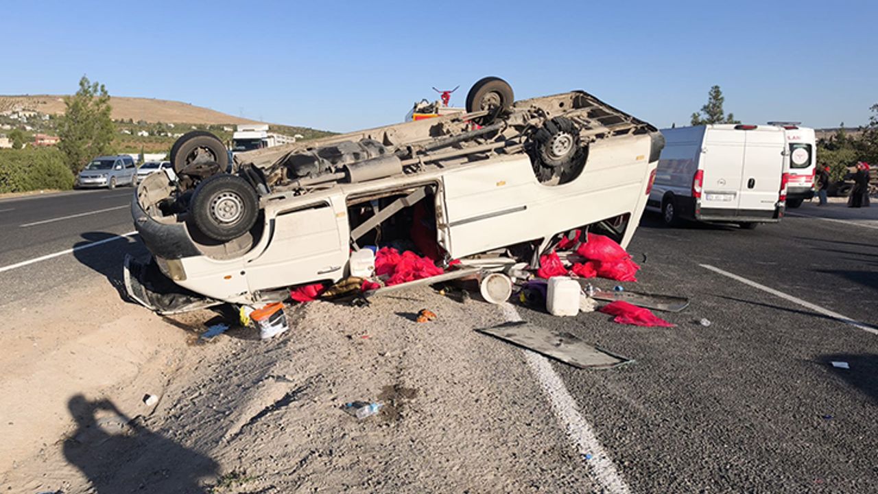 İsmail A. idaresindeki tarım işçilerini taşıyan minibüs, Şanlıurfa-Bozova karayolunun 15'inci kilometresinde sürücüsünün kontrolünden çıkarak devrildi.