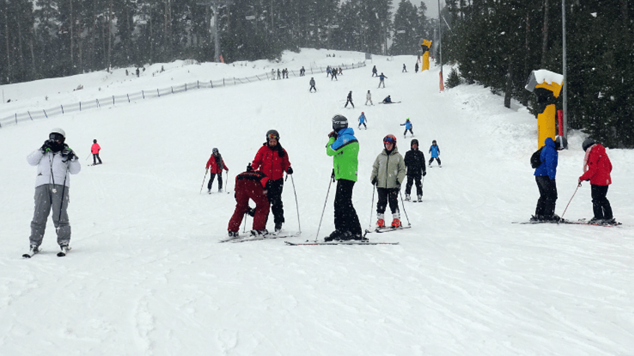 Sömestir tatili dolayısıyla hafta sonu tatilini geçiren aileler çocuklarıyla kızakla kaydı, yerli ve yabancı turistler kayak ile snowboard yaparak eğlenceli vakit geçirdi.