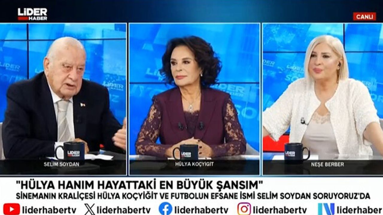 Yeşilçam’ın Kraliçesi Hülya Koçyiğit ve spor camiasının duayen isimlerinden Selim Soydan, Lider Haber TV’de yayınlanan Neşe Berber’in sunduğu Soruyoruz programının canlı yayın konuğu oldu. Koçyiğit ve Soydan, programda geçmiş yaşantılarına dair çok özel açıklamalarda bulundu. Selim Soydan, eşi Hülya Koçyiğit ile ilgili konuşurken, “Hülya Hanım’ı gördüğüm gibi, şansım döndü benim. Hülya Hanım hayatta en büyük şansımdır. Çünkü ben çok aşırı bir insandım, yaramazdım. Maalesef kötü bir huyum vardı. Kumarı çok severdim. Tam 57 sene geçti. Demek ki bunları söyleyebilecek güçteyim. Yapmış olduğum hatalardan arındım sonra” ifadelerini kullandı.