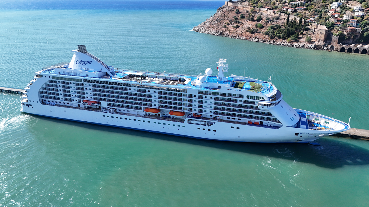 Rodos Adası'ndan demir aldıktan sonra rotasını Antalya'ya çeviren 206 metre uzunluğundaki kruvaziyer, sabah saatlerinde Alanya'ya ulaştı.