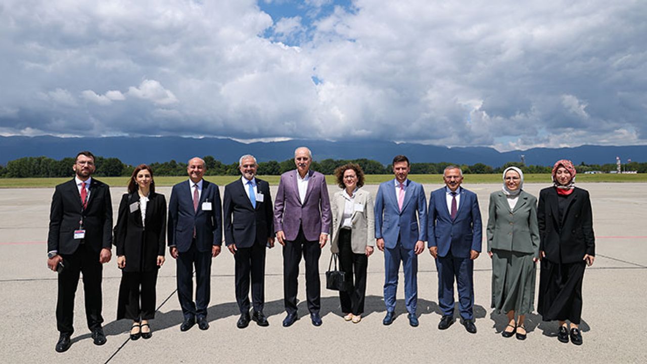 TBMM Başkanı Kurtulmuş’u, Cenevre Cointrin Havalimanı’nda Türkiye'nin Birleşmiş Milletler (BM) Cenevre Ofisi nezdinde Daimi Temsilcisi Burak Akçapar, Bern Büyükelçisi Şebnem İncesu, Türkiye'nin Dünya Ticaret Örgütü nezdinde Daimi Temsilcisi Hakan Çakıl, Cenevre Başkonsolosu İpek Zeytinoğlu Özkan ve diğer yetkililer karşıladı.