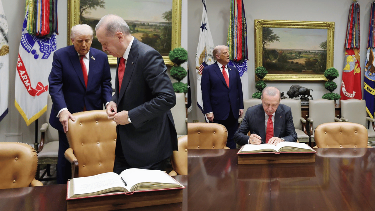 Cumhurbaşkanı Recep Tayyip Erdoğan ile ABD Başkanı Donald Trump arasında Beyaz Saray’da yapılan görüşme sona erdi. Görüşme, 2 saat 20 dakika sürdü. Trump, görüşme sırasında Cumhurbaşkanı Erdoğan’ın anı defterini imzalamak için oturacağı sandalyeyi çekerek jest yaptı. Görüşmenin ardından Trump, Cumhurbaşkanı Erdoğan’ı makam aracına kadar uğurladı. Trump’ın ayrıca uğurlama sırasında Dışişleri Bakanı Hakan Fidan, MİT Başkanı İbrahim Kalın, Enerji ve Tabii Kaynaklar Bakanı Alparslan Bayraktar ve diğer yetkililer ile ayaküstü sohbet ettiği görüldü.