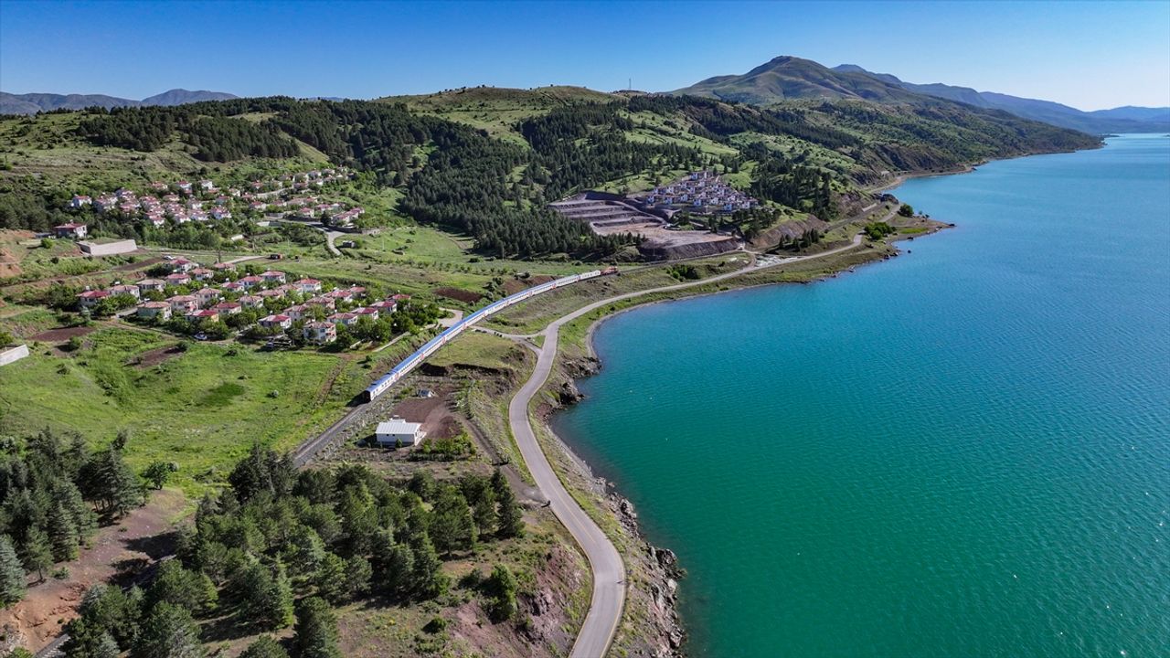 Ankara'dan yola çıktıktan sonra 1051 kilometrelik bir yay çizerek Kayseri, Malatya, Elazığ'ı aşıp Diyarbakır'a ulaşan tren, Diyarbakır'dan Elazığ'a uzanan güzergahında tarım alanları, yeşil ovalar, tüneller ve Hazar Gölü'ndeki seyrinde dronla görüntülendi.