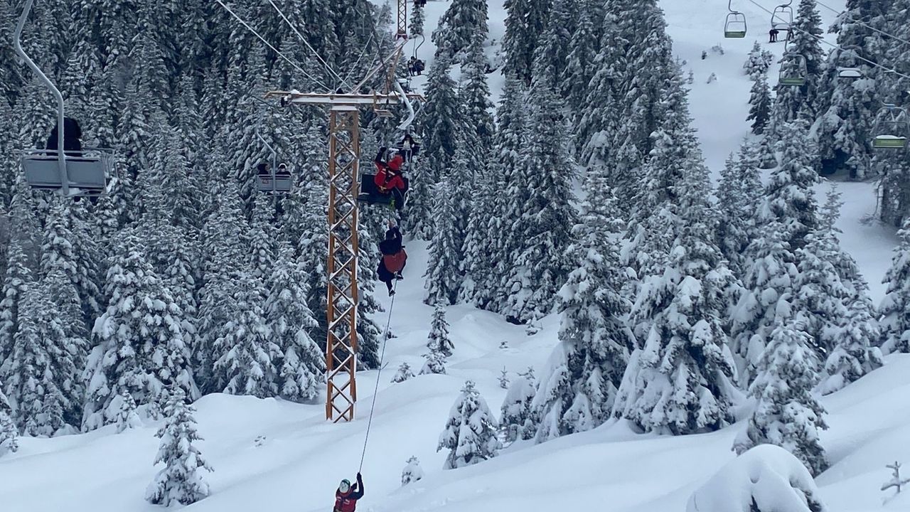 Türkiye’nin kış turizminin başkenti Uludağ’da fahri telesiyej, yoğunluk sırasında meydana gelen şanzıman arızası nedeniyle durdu. Olay anında yaklaşık 150 kişi, metrelerce yükseklikte havada asılı kaldı#Uludağ #Telesiyej #Mahsur pic.twitter.com/ri4JAyzkSA