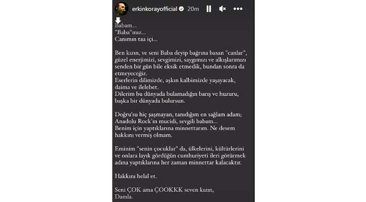 Acı haberi Erkin Koray'ın kızı Damla Koray duyurdu: