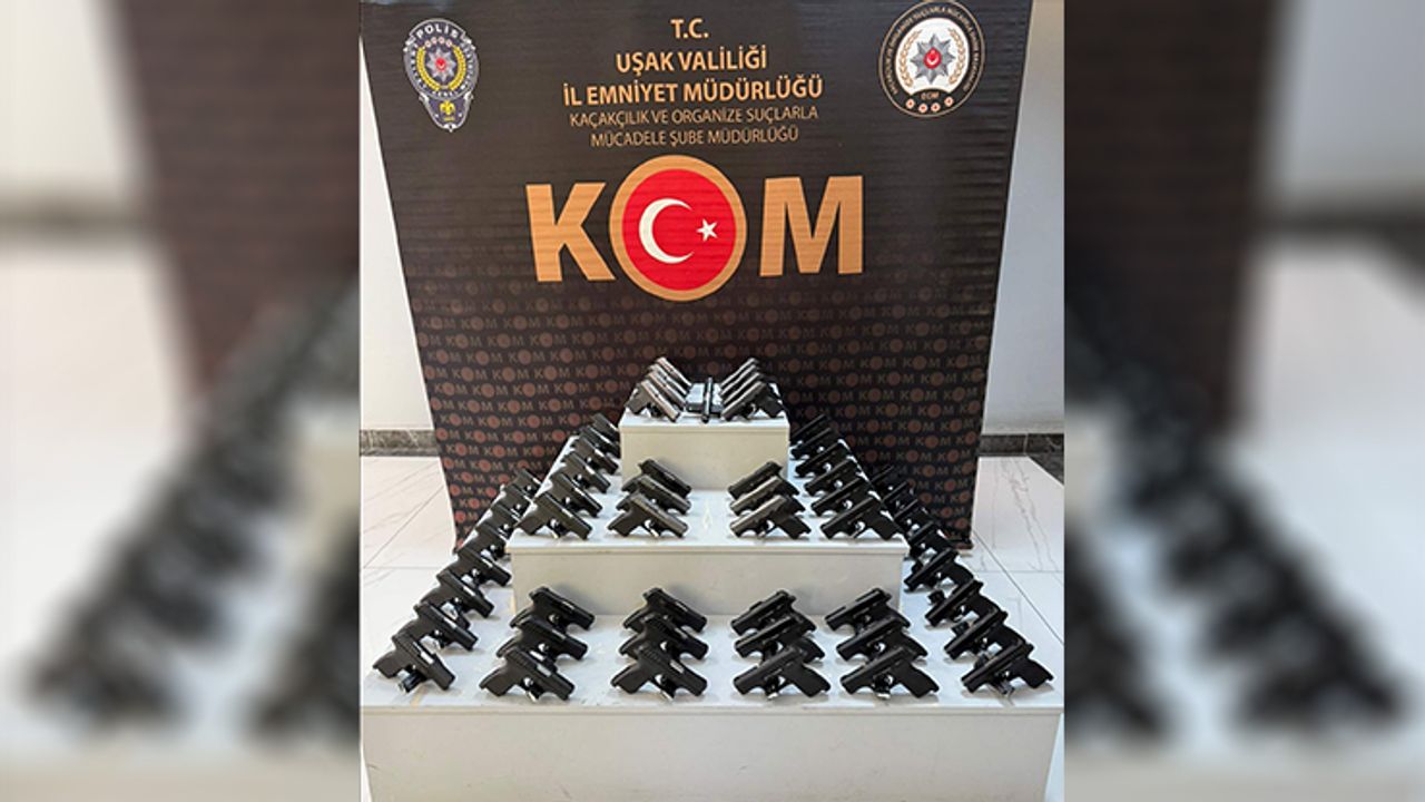 Ekipler, bagajdaki iki valizde 55 ruhsatsız tabanca ele geçirdi.