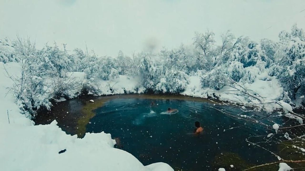Erzincan’da etkili olan soğuk hava ve kar yağışı kent genelinde beyaz örtü oluştururken, üç arkadaşın etrafı karla kaplı gölette yüzmesi görenleri şaşırttı. Hava sıcaklığının eksi 4 dereceye kadar düştüğü kentte, su sıcaklığının ise 0 derece olarak ölçüldüğü anlarda gölete giren üç arkadaş, sıra dışı deneyimleriyle dikkat çekti.