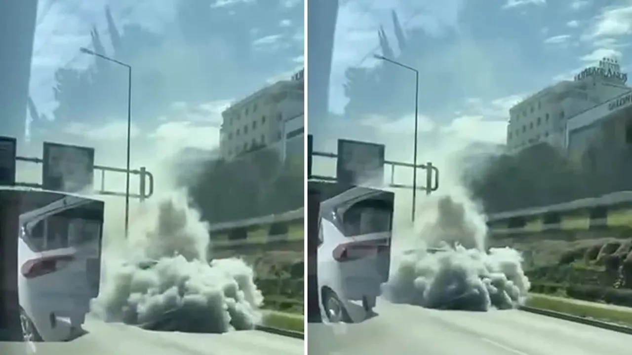 Aracın motor kısmından yükselen yoğun dumanlar nedeniyle sürücüler büyük endişe yaşarken, olay yerine itfaiye ve polis ekipleri sevk edildi.