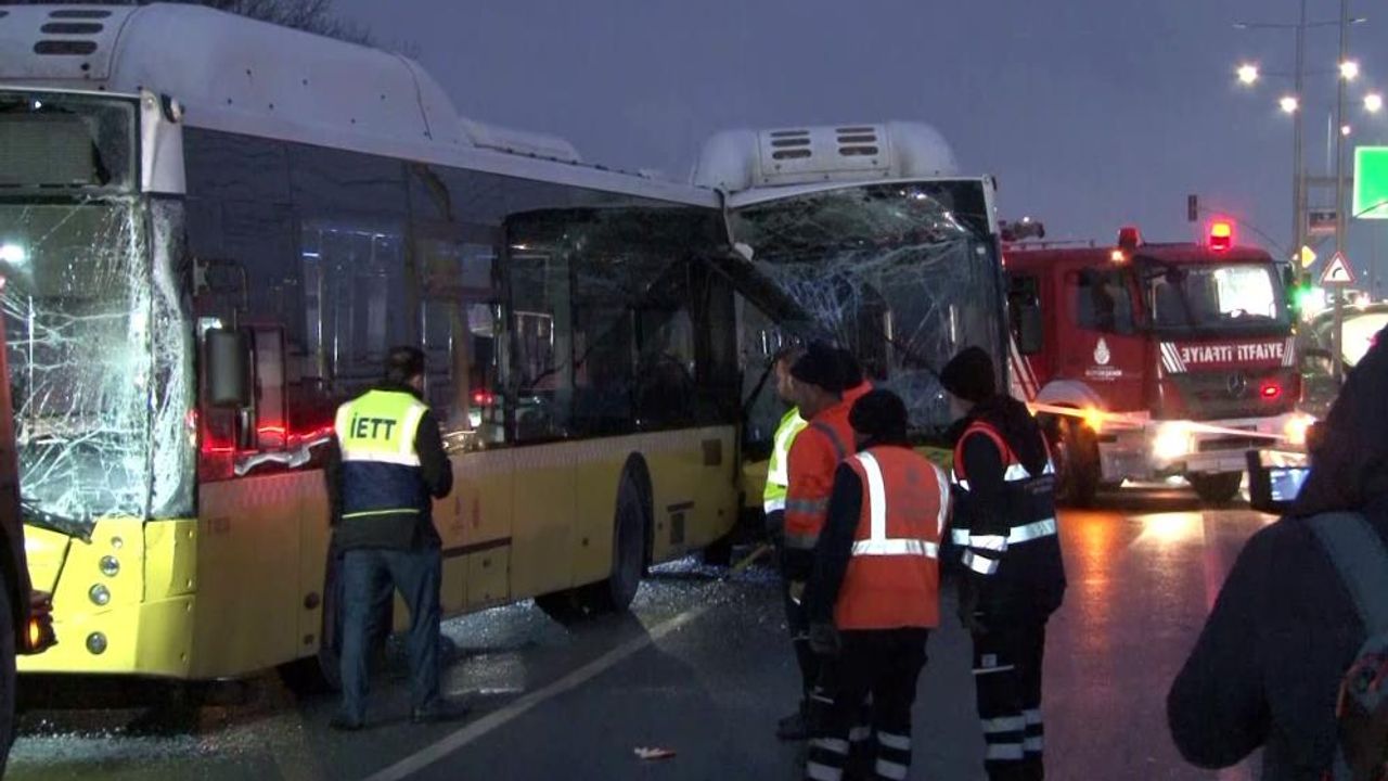 Başakşehir'de sabah saatlerinde meydana gelen ve seyir halindeki 3 İETT Otobüsünün karıştığı kazada 5 yolcu yaralandı. Kaza sonrası 2 İETT Otobüsü kullanılamaz hale gelirken, kaza anı kameraya yansıdı.