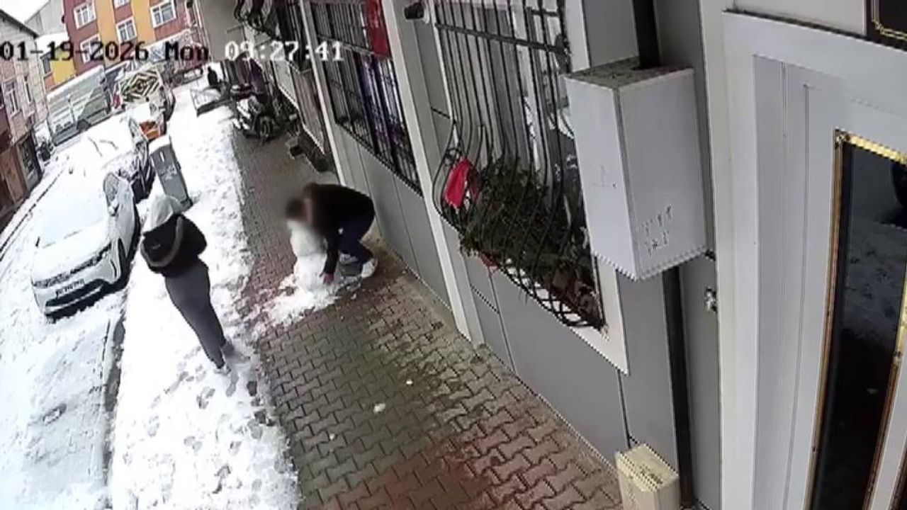 Küçükçekmece'de kız arkadaşıyla birlikte yürüyen bir kişi, çocukların yaptığı kardan adamı alıp götürdü. Şahsın yerinden oynattığı kardan adamın bir kısmı dağılırken, o anlar güvenlik kamerasına böyle yansıdı.