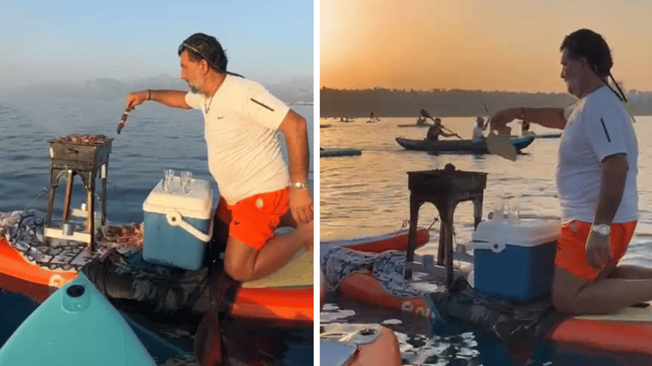 Gören gözlerine inanamadı, denizin ortasında SUP üzerinde mangal yakıp ciğer pişirdi#Antalya #Deniz #Mangal pic.twitter.com/QGqw4oaKIW