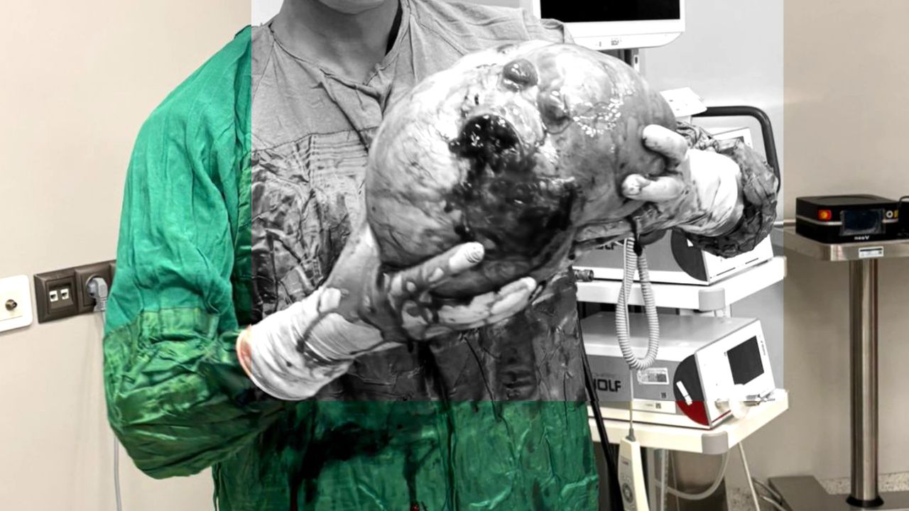 Ameliyata uygun olduğu belirlenen hasta, hemen operasyona alındı. Bir saat süren başarılı ameliyat sonucunda, morfolojik olarak sarkom (yumuşak doku tümörü) ile uyumlu olduğu düşünülen 4 kilogram ağırlığındaki kitle çıkarıldı. Ameliyat sonrası serviste tedavisi tamamlanan hasta, sağlığına kavuşarak taburcu edildi.