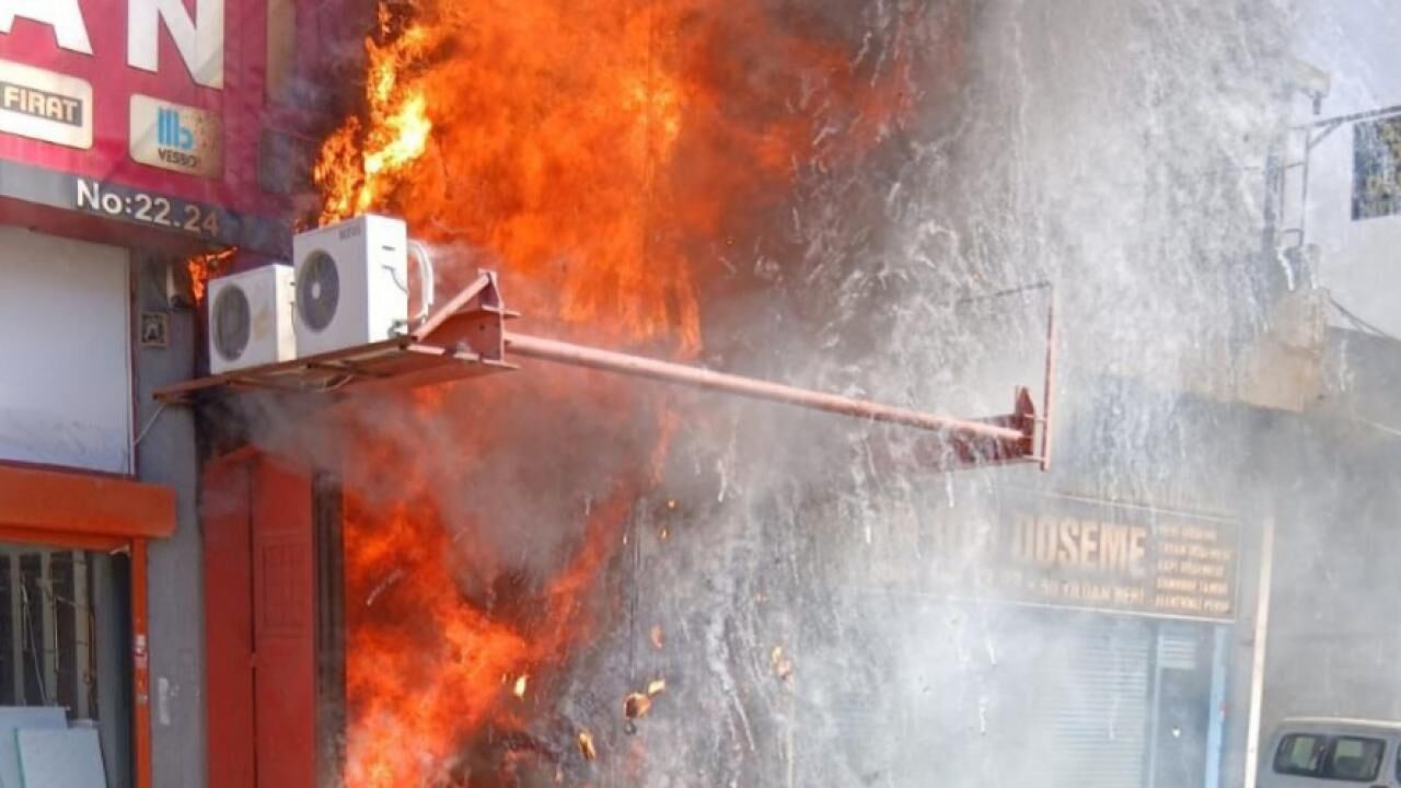 Seyitnizam Mahallesi'ndeki Demirciler Sitesi'nde bulunan 2 katlı iş yerinde henüz belirlenemeyen nedenle yangın çıktı.